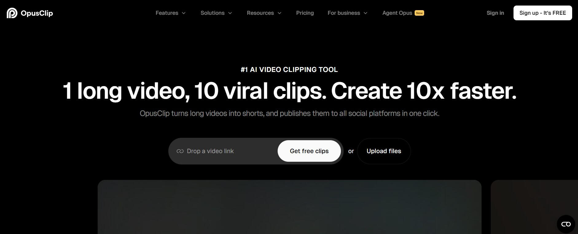Turns long videos into viral short clips using AI detection of the most engaging moments.